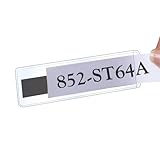 Your standard 1/2" x 4" or 7/8" x 4" label just slips in either short side. This label holder is designed for quick and easy changes anywhere. Made with an 8 gauge, crystal clear front and back with a 1/2" x 4" magnetic strip on the back. Bar code scanner compatible. Holds either a 1/2" x 4" or 7/8" x 4" label. Overall size: 1 1/8" x 4 3/8". Open on both short sides. --- --- This pack has 25 pockets. Check Amazon for the 100-pack (PESPC2432SSM-100). --- --- StoreSMART also offers on Amazon many sizes of self adhesive pockets, non-adhesive pockets and job ticket holders. Use for business cards, CDs, in binders and more. These pockets are ideal for adding important personalized information to your reports, documents, presentations and proposals.